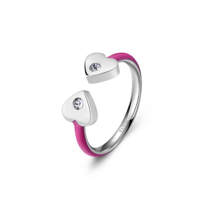 Anello S’Agapò  in acciaio 316L con cuori, smalto fucsia e cristalli.