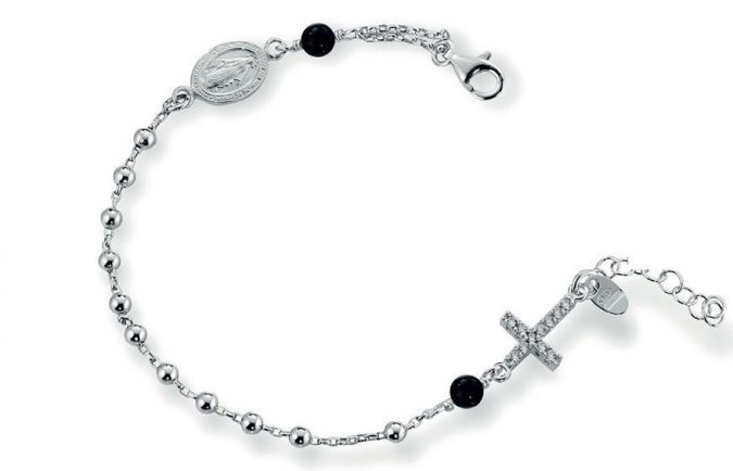Bracciale Ananda in argento con madonnina e croce con zirconi bianchi.