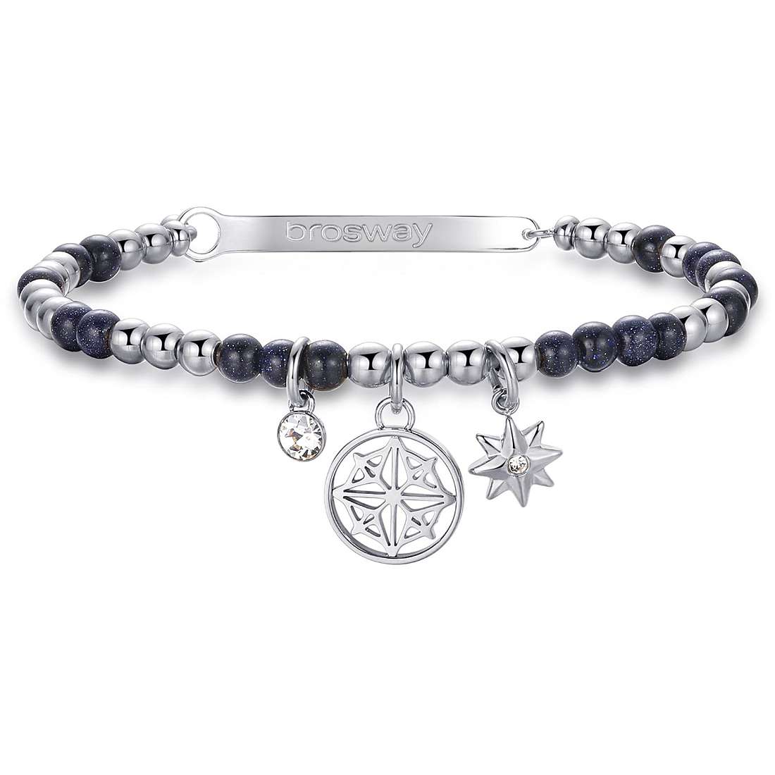 Bracciale Brosway rigido in acciaio 316L e pietra eliolite blu con pendenti a forma di rosa dei venti, stella polare e cristallo crystal.