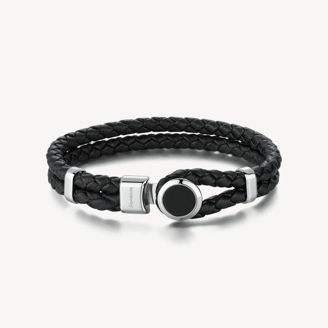 Bracciale Brosway in pelle di colore nero con elementi in acciaio 316L e onice nera satinata. Misura:195mm