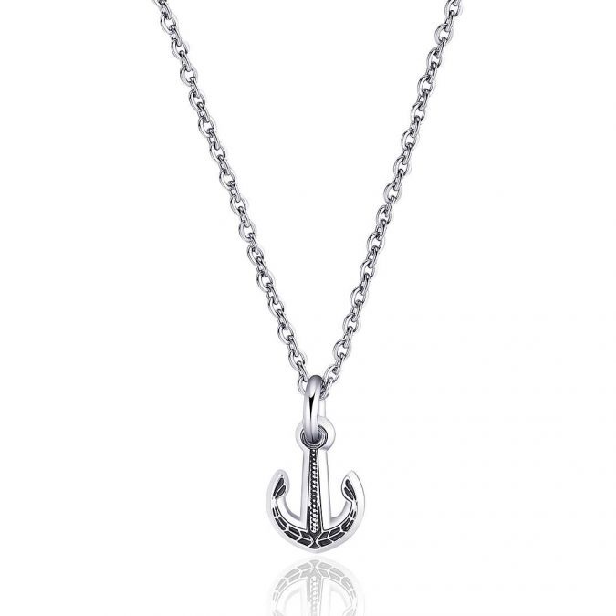 Collana S’agapò in acciaio 316L con pendente a forma di ancora e smalto nero.