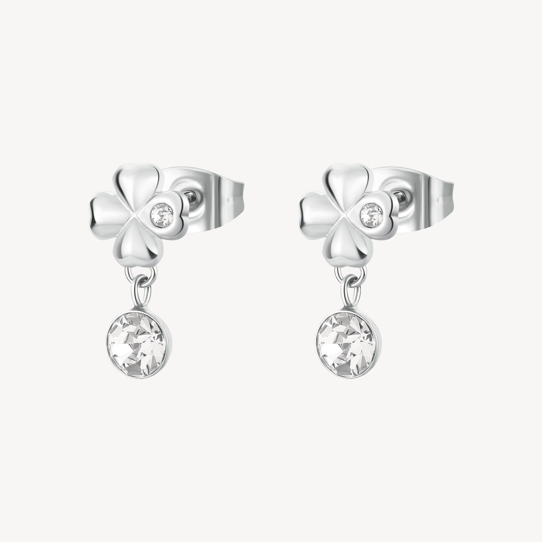 Orecchini Brosway in acciaio 316L a forma di quadrifoglio e cristalli.