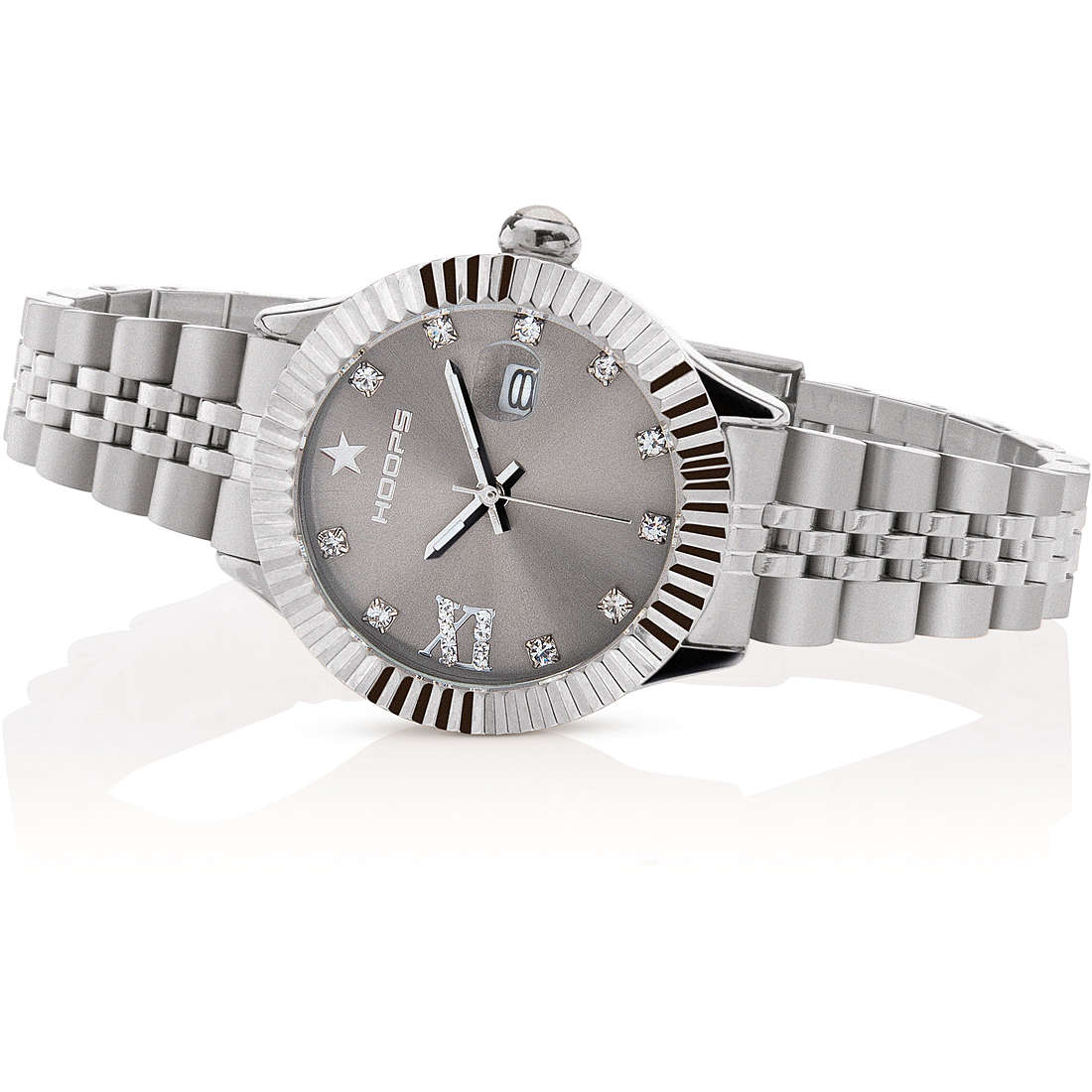 Orologio Hoops con cassa in metallo di 30mm, quadrante di colore grigio scuro con zirconi, cinturino in metallo. Resistenza all’acqua di 2Atm.