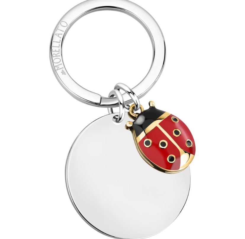Portachiavi Morellato realizzato in acciaio , ha come simbolo una coccinella in pvd oro smaltata rossa e nera.